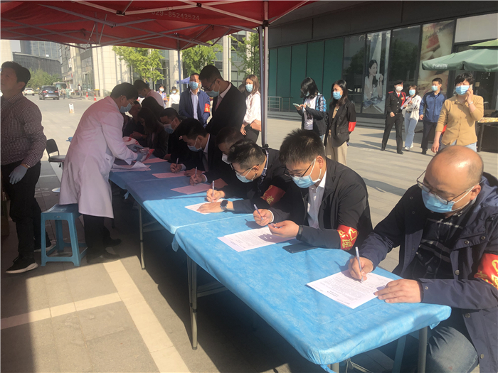在獻(xiàn)血現(xiàn)場,為確保志愿者自身安全、避免人群聚集,現(xiàn)場人員嚴(yán)格遵守疫情防控期間的獻(xiàn)血規(guī)定,全程佩戴口罩,自覺與他人保持安全距離。每位獻(xiàn)血者在保證身體健康、符合獻(xiàn)血條件的情況下,按照醫(yī)務(wù)人員的要求,填寫獻(xiàn)血單、經(jīng)過測溫和詢問、測心率、量血壓、采血樣并進(jìn)行初步篩查后進(jìn)行獻(xiàn)血,整個過程井然有序。鮮紅的血液帶著每個人的愛心與溫暖汨汨流向血袋,將會為疫情下的西安再次注入生命的活力。