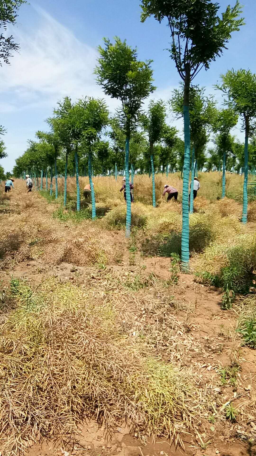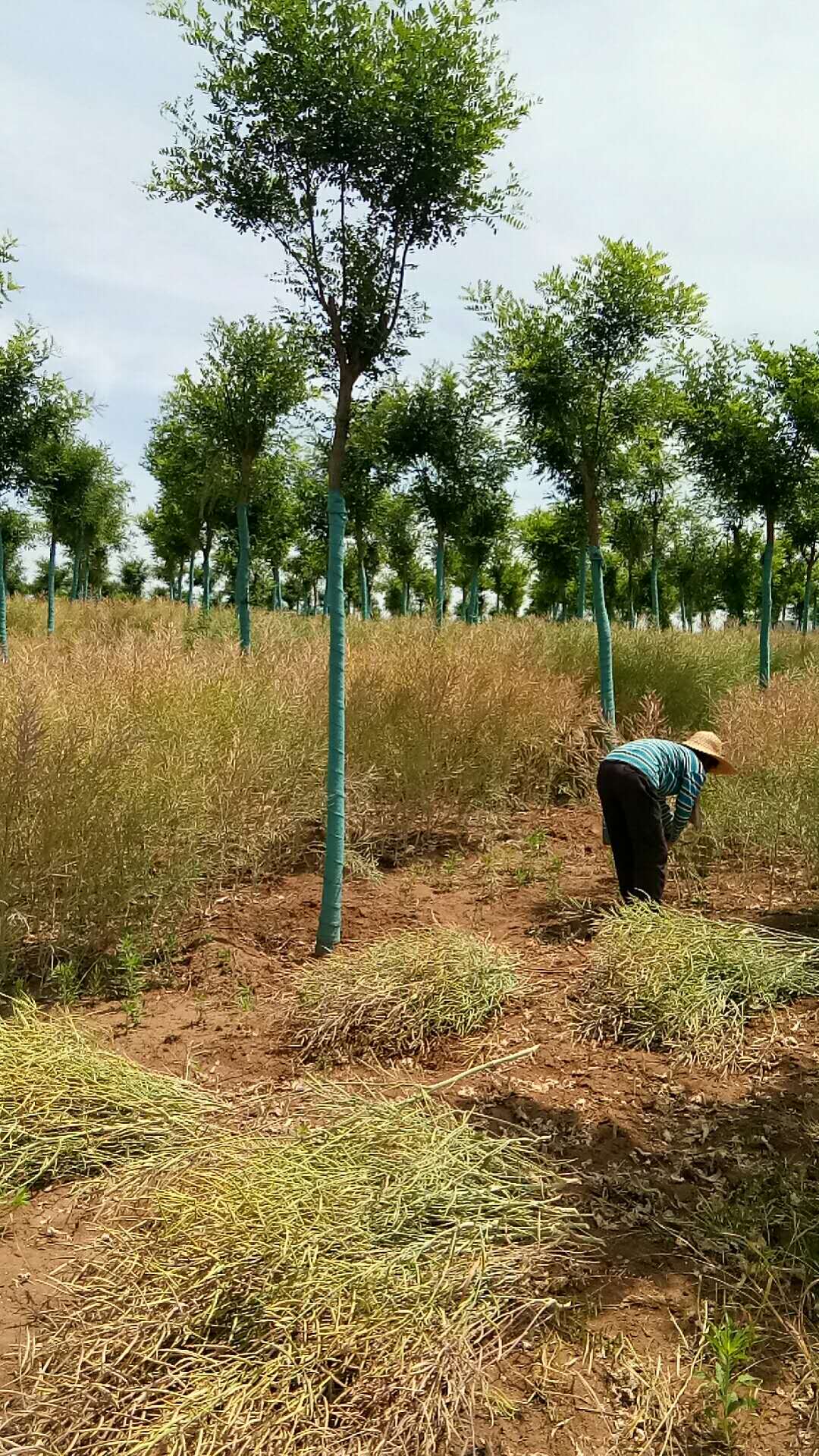 五月,仲夏時節(jié),夏花絢爛、果實飄香,位于藍(lán)田縣農(nóng)林產(chǎn)業(yè)扶貧基地的油菜花也進(jìn)入收割期。孕育了兩個月的油菜花結(jié)出了飽滿的花籽,讓春天里燦爛的花海被一片豐收繁忙的景象所替代:田間,經(jīng)發(fā)景觀工作人員有的在忙著收割、有的在晾曬油菜花,運輸農(nóng)資的車輛來回穿行……為苗圃增添了收獲的喜悅。