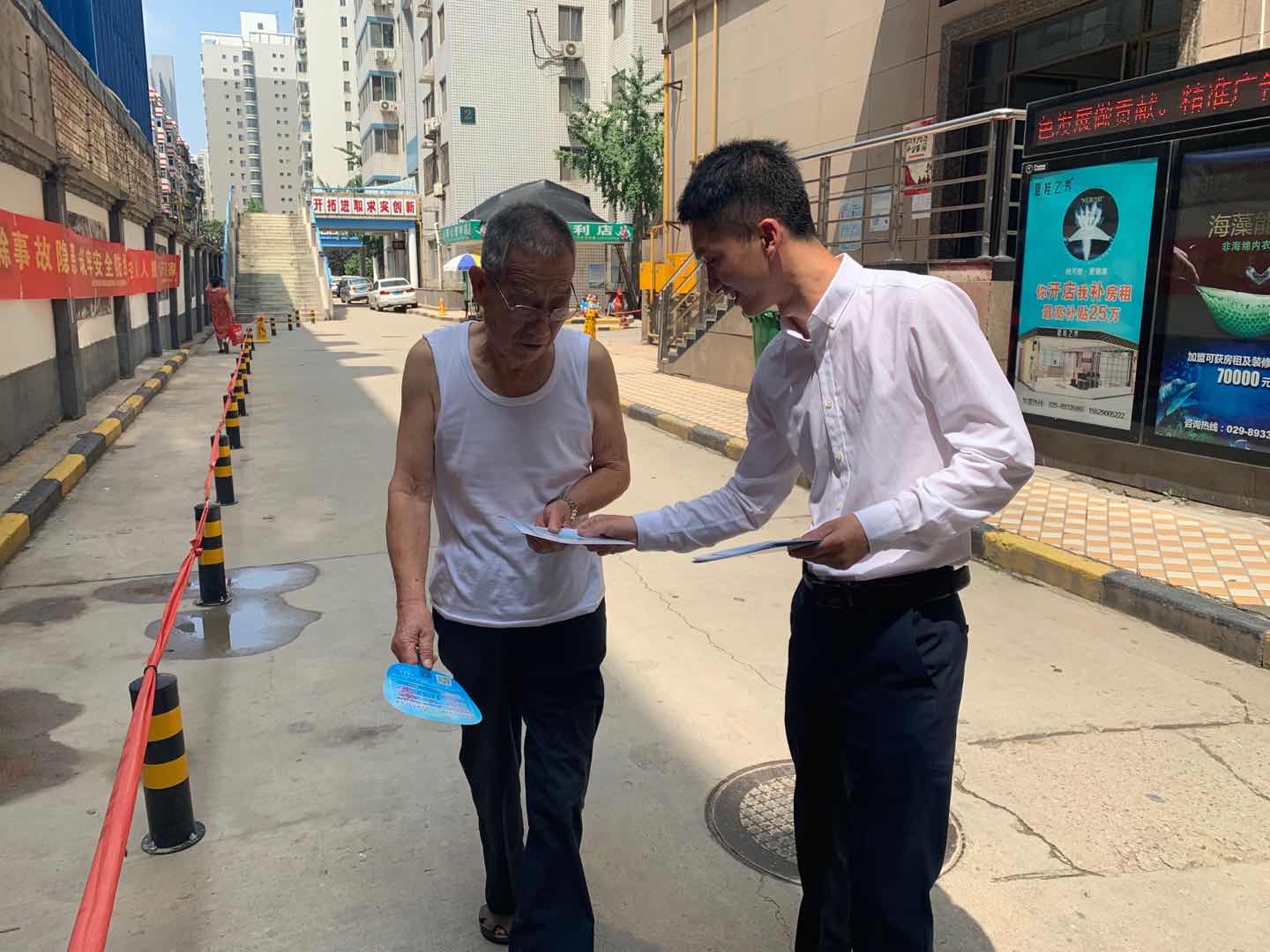 期間不乏好人好事身影的出現(xiàn)?,F(xiàn)在,讓我們跟隨鏡頭里記錄的畫面,一起來了解創(chuàng)文宣傳活動期間的小插曲。經(jīng)發(fā)物業(yè)志愿者在走訪省建設設計院家屬院過程中,發(fā)現(xiàn)居民車出現(xiàn)故障,幫助居民解決車故障問題。