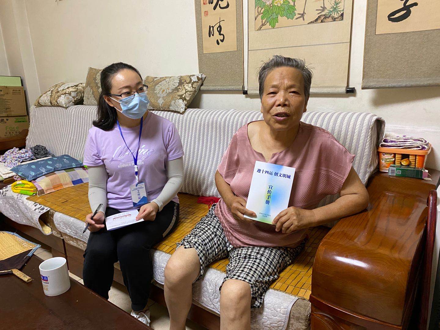 面對時間緊,任務重加之烈日炎炎的盛夏,創(chuàng)文志愿者們不辭辛苦來到各小區(qū),與小區(qū)居民面對面交流,耐心講解創(chuàng)文知識,普及西安市民“文明公約”,文明餐桌,文明旅游等知識。派發(fā)《迎十四運 創(chuàng)文明城》宣傳手冊。居民聽著講解,同時認真填寫調(diào)查問卷。