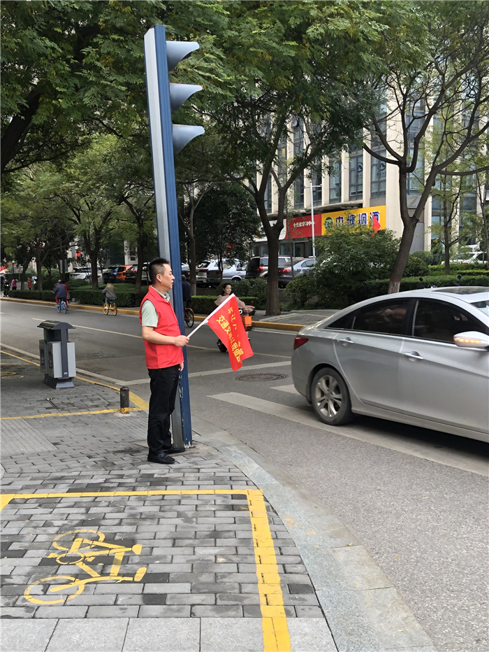 來自集團本部及經(jīng)發(fā)建設(shè)等三家子公司的志愿者們守在文景路鳳城六路十字四面,分別在早、中、晚三個時段不間斷引導(dǎo)車輛禮讓行人,勸導(dǎo)行人不闖紅燈、不亂穿馬路,幫助擺放路口附近的共享單車,扶行動不便的路人過馬路,適時充當問路行人的“導(dǎo)航”,在涼爽秋日里為廣大市民朋友帶來一陣和煦的文明的之風(fēng)。